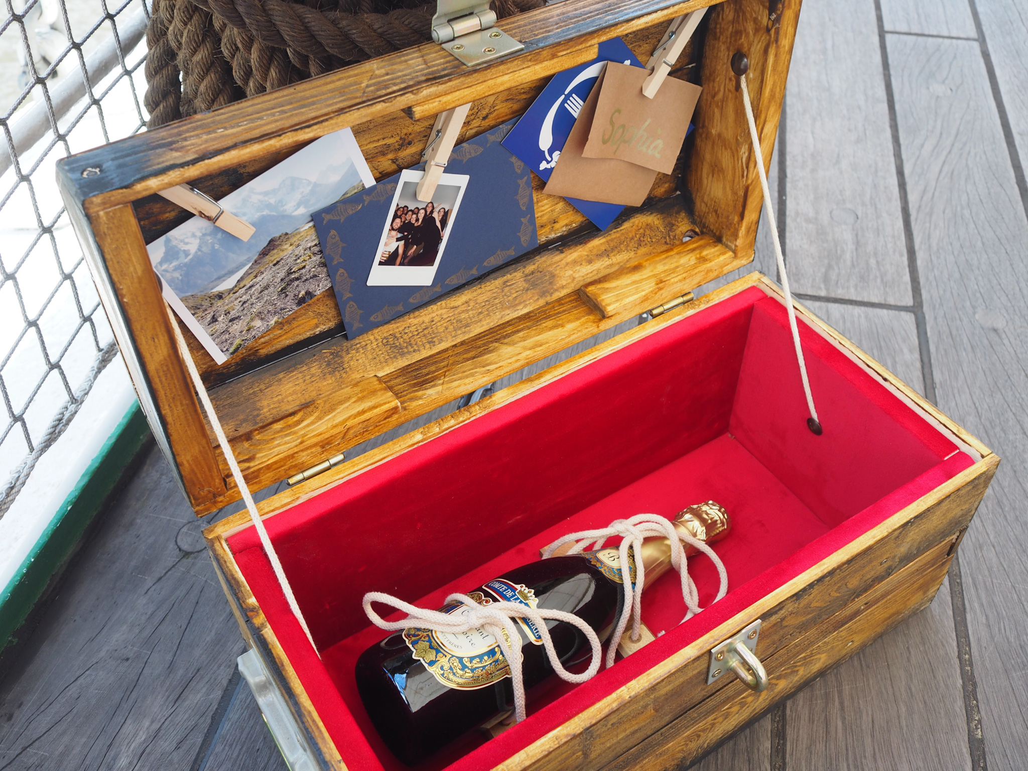 The box will be integrated into the game room and the puzzle will be solved by the group. As a surprise, a bottle of sparkling wine and our crime game will be waiting for you. Of course, you can also add other gifts that you bring with you during the day. More information about our surprise box can be found here.