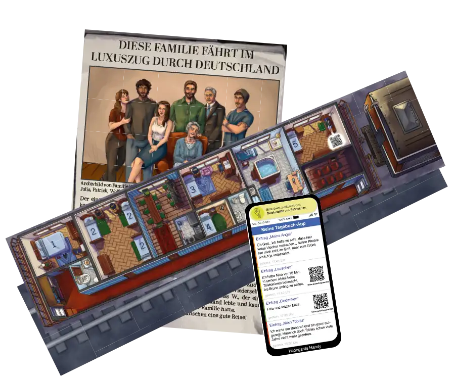 Welche Tür führt wohin? Wer schläft wo? Wem gehört welches Gepäckstück? Fügt die Informationen Stück für Stück zusammen.