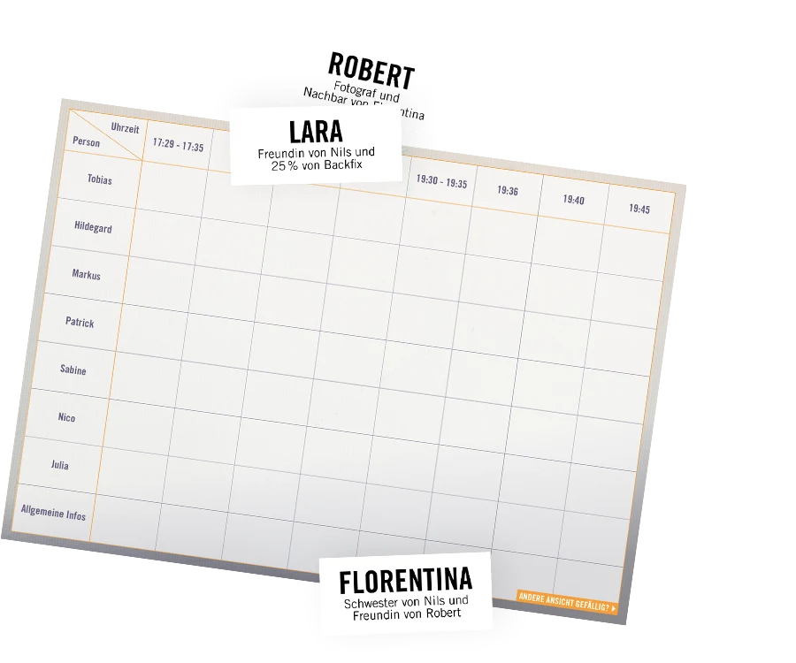 Haltet das Geschehen des gestrigen Abends fest und findet heraus wer war wann wo und warum?