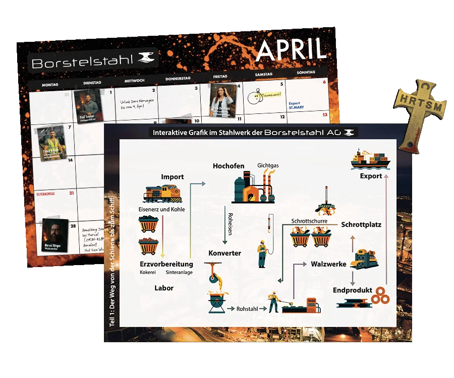 Ein metallischer Gegenstand und weitere multimediale Inhalte, lassen euch tief eintauchen in GLUTSPUR.